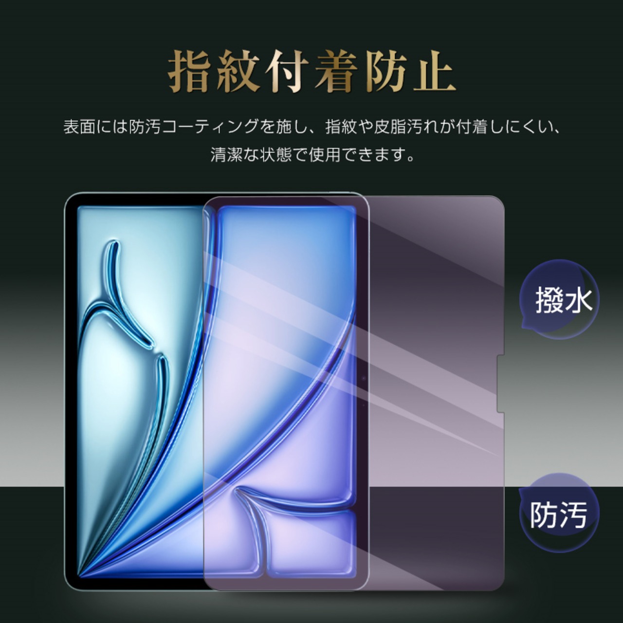 指紋防止加工により、指紋が自立だずぶき取りが簡単。