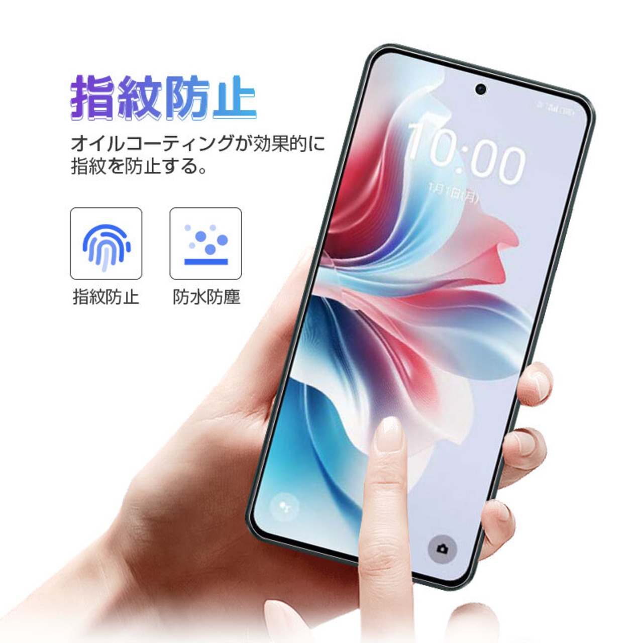 指紋防止加工により、指紋が自立だずぶき取りが簡単。