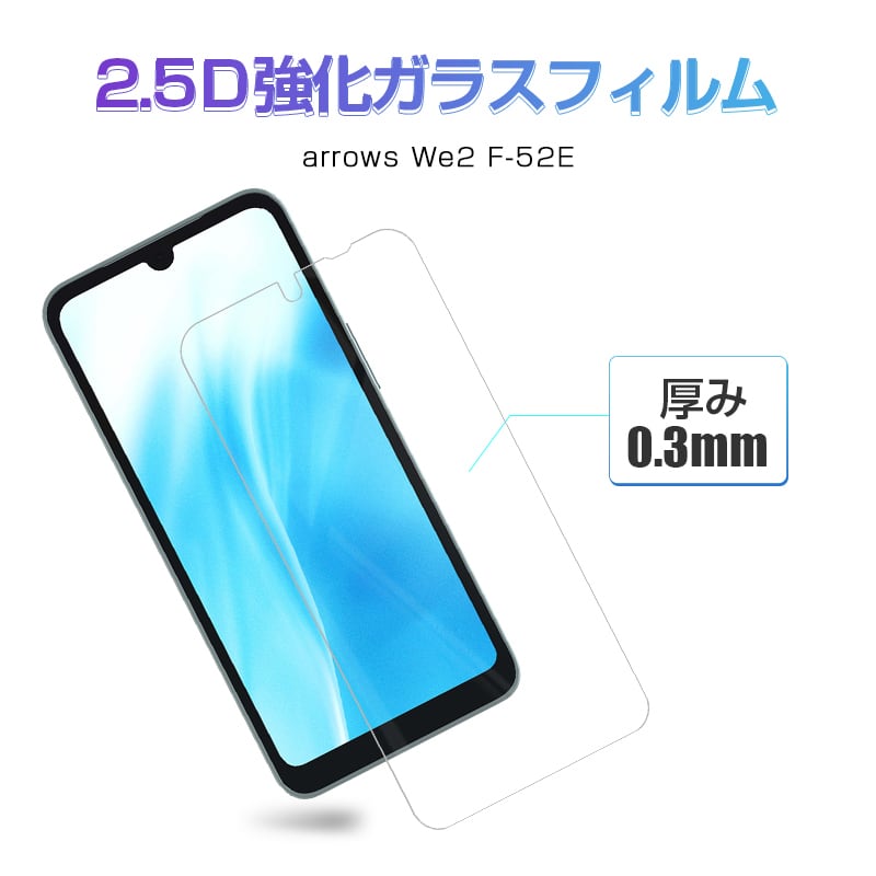 【2枚セット】arrows We2 強化ガラスフィルム 富士通スマホ arrows We2 F-52E docomo 液晶保護ガラスシール アローズ携帯電話 スクリーン保護シート arrows We2 FCG02 クリア仕様 高透過率 ラウンドエッジ加工 ケース併用可能 超薄型 快適なタッチ 滑らか | meisei-shop